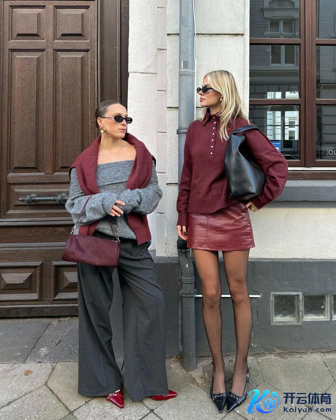 如若照旧认为太“吵杂”,不错将酒红色置于外衣之下,点缀在重重叠叠的穿搭之间,既大概千里稳地有种常识分子作风俗质,“一眼难忘”的嗅觉又能还是保留。
