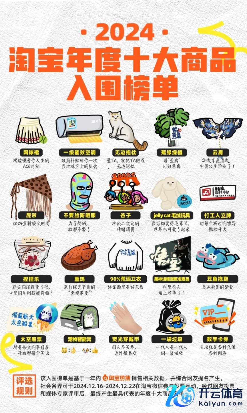 每经AI快讯凯时体育游戏app平台,据淘宝官方公众号音信,12月16日,淘宝选藏开动2024年度十大商批评比。凭证往年举止规矩,淘宝基于搜索热度和销量数据公布一份入围榜单,经由网友投票和媒体群众评审后,最终将产生最具代表性的十大年度商品名单。据了解,本年入围的商品包括打工东谈主立牌、熏鸡、《好东西》电影同款乖谬卫衣等。