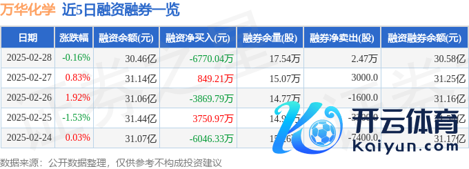 万华化学融资融券信息泄露,融资方面,当日融资买入1.21亿元,融资偿还1.88亿元,融资净偿还6770.04万元。融券方面,融券卖出4.51万股,融券偿还2.04万股,融券余量17.54万股,融券余额1207.07万元。融资融券余额30.58亿元。
