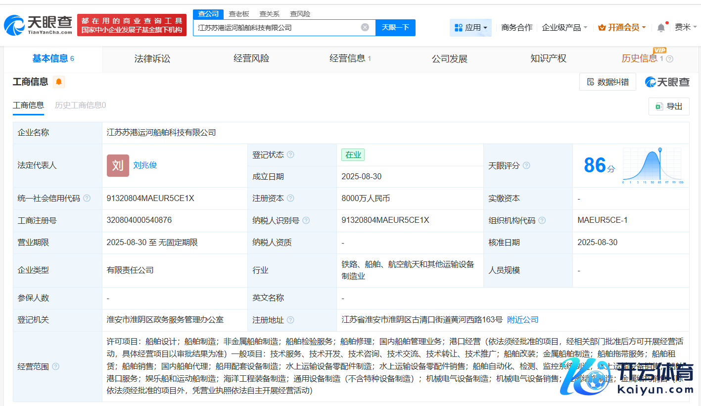 南边财经9月3日电尊龙凯时体育,天眼查工商信息显现,近日,江苏苏港运河船舶科技有限公司开导,法定代表东谈主为刘兆俊,注册成本8000万东谈主民币尊龙凯时体育,筹画限制包括船舶缠绵、船舶制造、非金属船舶制造等。推动信息显现,该公司由江苏省运河航运有限公司全资执股。