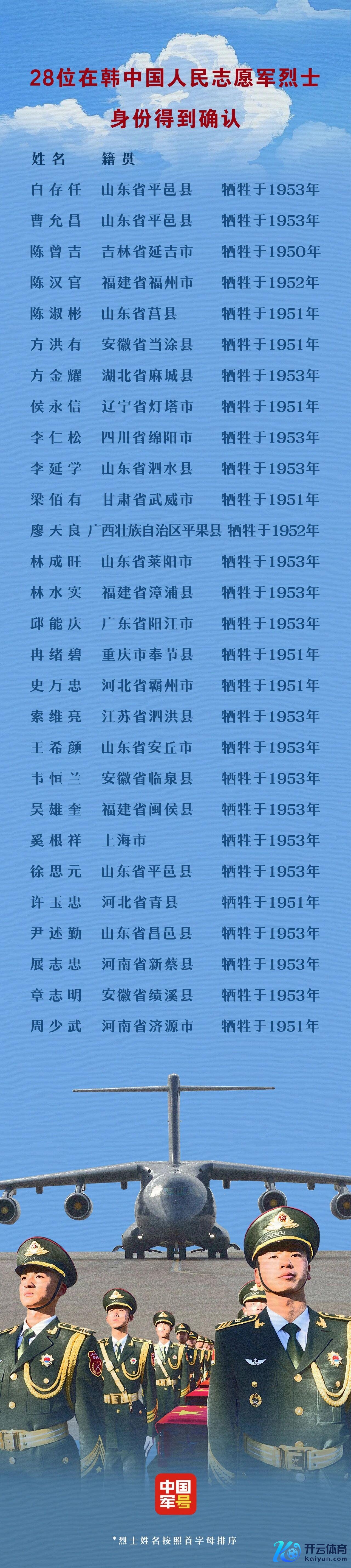 据先容,完满现在,已迎回前11批981位在韩志愿军义士遗骸审定比对使命还是完成。